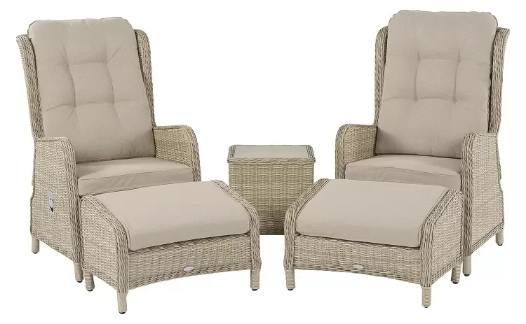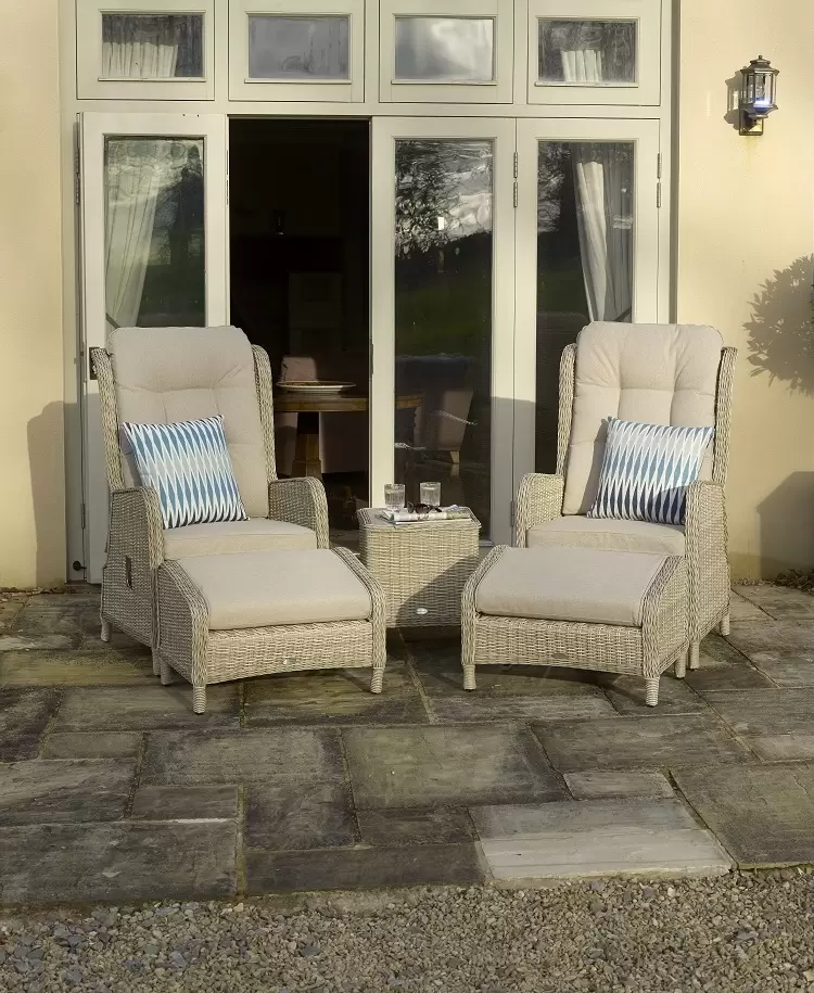 Elevate your outdoor relaxation experience with the Chedworth Deluxe Recliner Set. Order online through our webshop or visit Trioscape Garden Centre to try out this set in person!