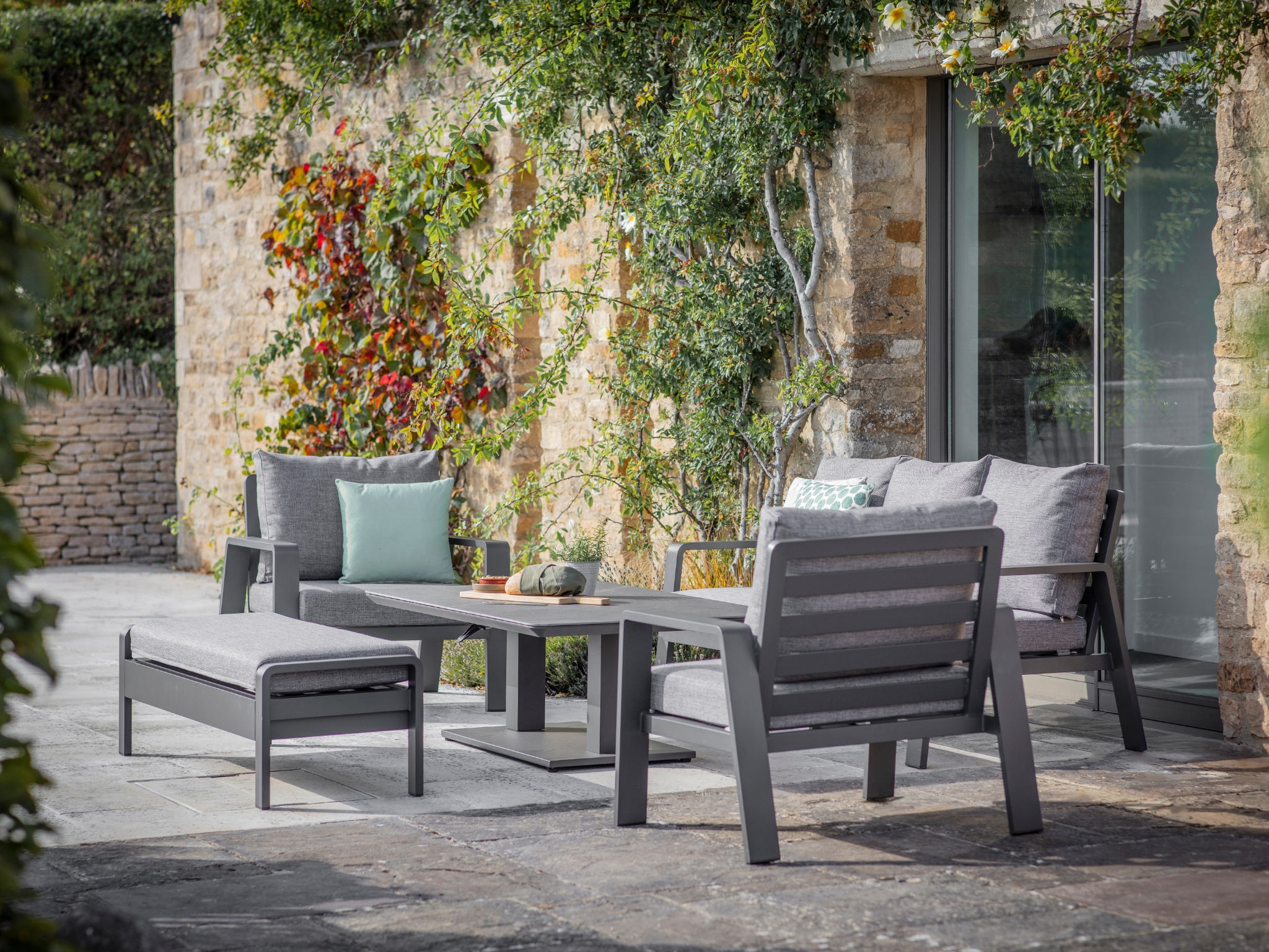 Prague 3 Seat Sofa With Rectangle Piston Adjustable Table, 2 Sofa Chairs & Bench - Anthracite
