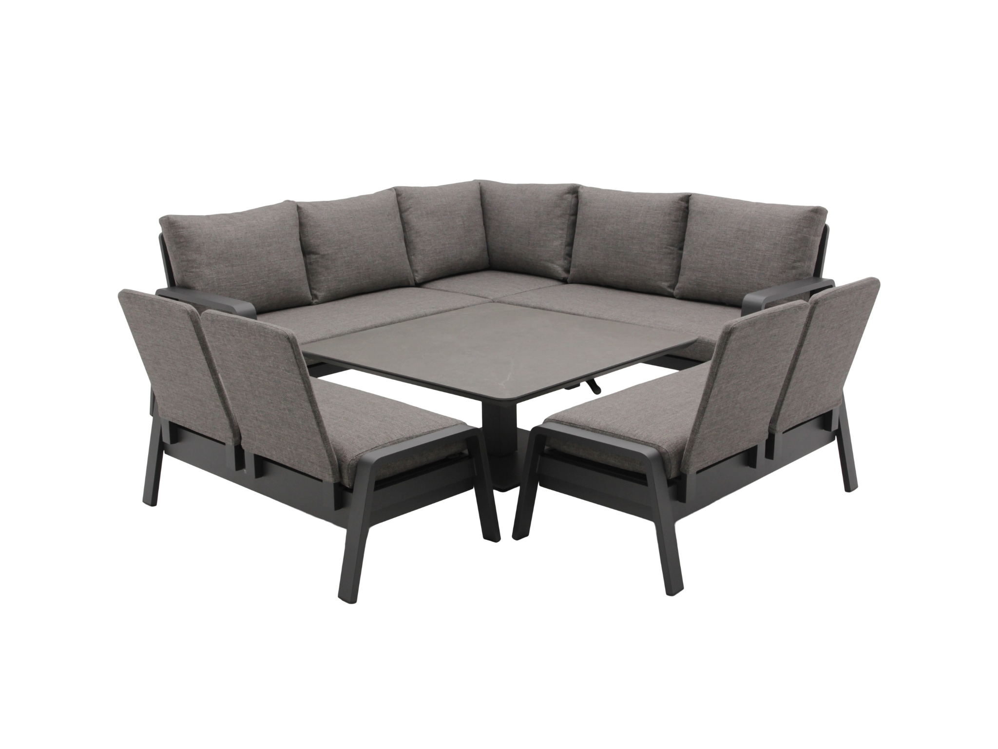 Prague Square Sofa with Piston Adjustable Table & 2 Benches - Anthracite