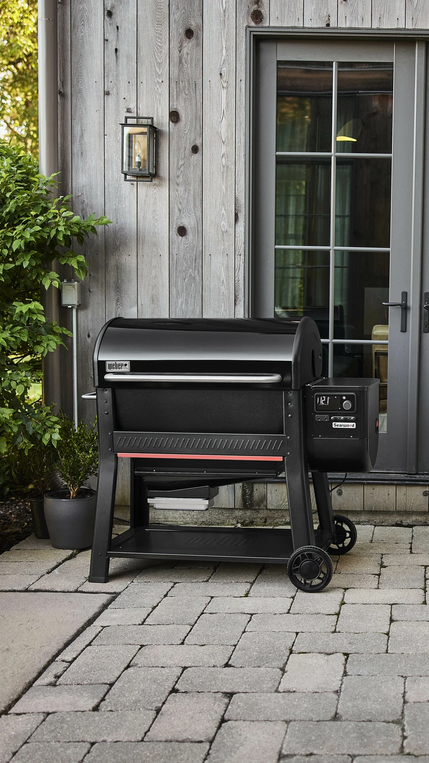 Smoke, sear, roast, and more on the Searwood XL 600 pellet grill featuring a full temperature range from 80° to 315°C (180° to 600°F) and DirectFlame cooking that creates bold flavorful sear marks and delicious golden browning. The Searwood XL 600 pellet grill heats up in 15 minutes or less†, cooks evenly and features a full grate sear zone that lets you get more food on the flame. Cook confidently with intuitive digital controls at the grill and Wi-Fi® and Bluetooth® connectivity that lets you monitor and control the grill remotely, see live graphs of your cook, get readiness alerts, recipes, and more from the Weber Connect™ app on your smart phone. The built-in fuel gauge shows the current pellet level and sends you notifications when the pellet level is low. Explore new techniques with a rotisserie or griddle insert (each sold separately). Then clean up quickly and easily with the pull and clean grease and ash management system located at the front of the grill.