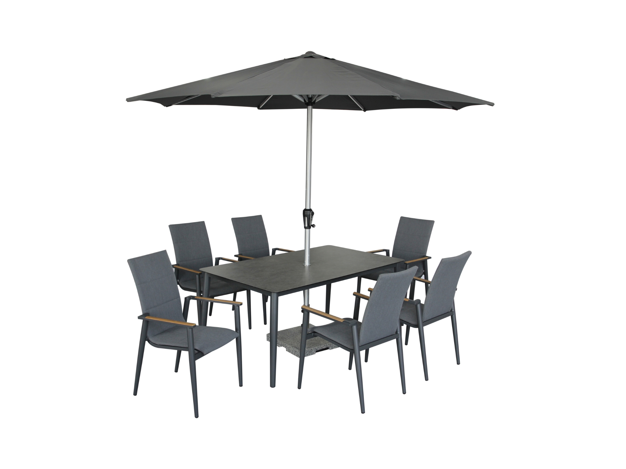 Sofia 165 x 95cm Rectangle Table with 6 Deluxe Armchairs, Parasol & Base - Anthracite
