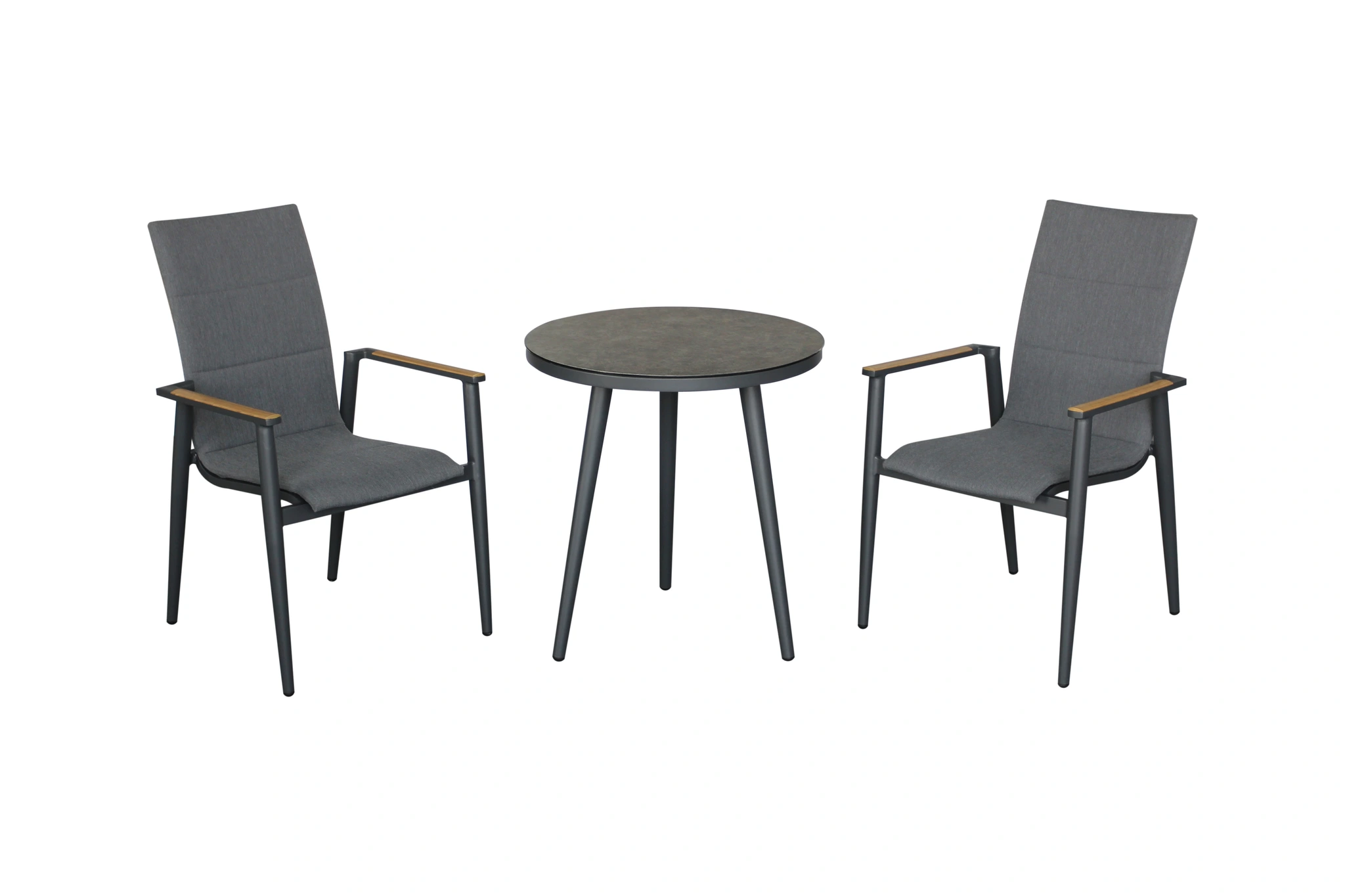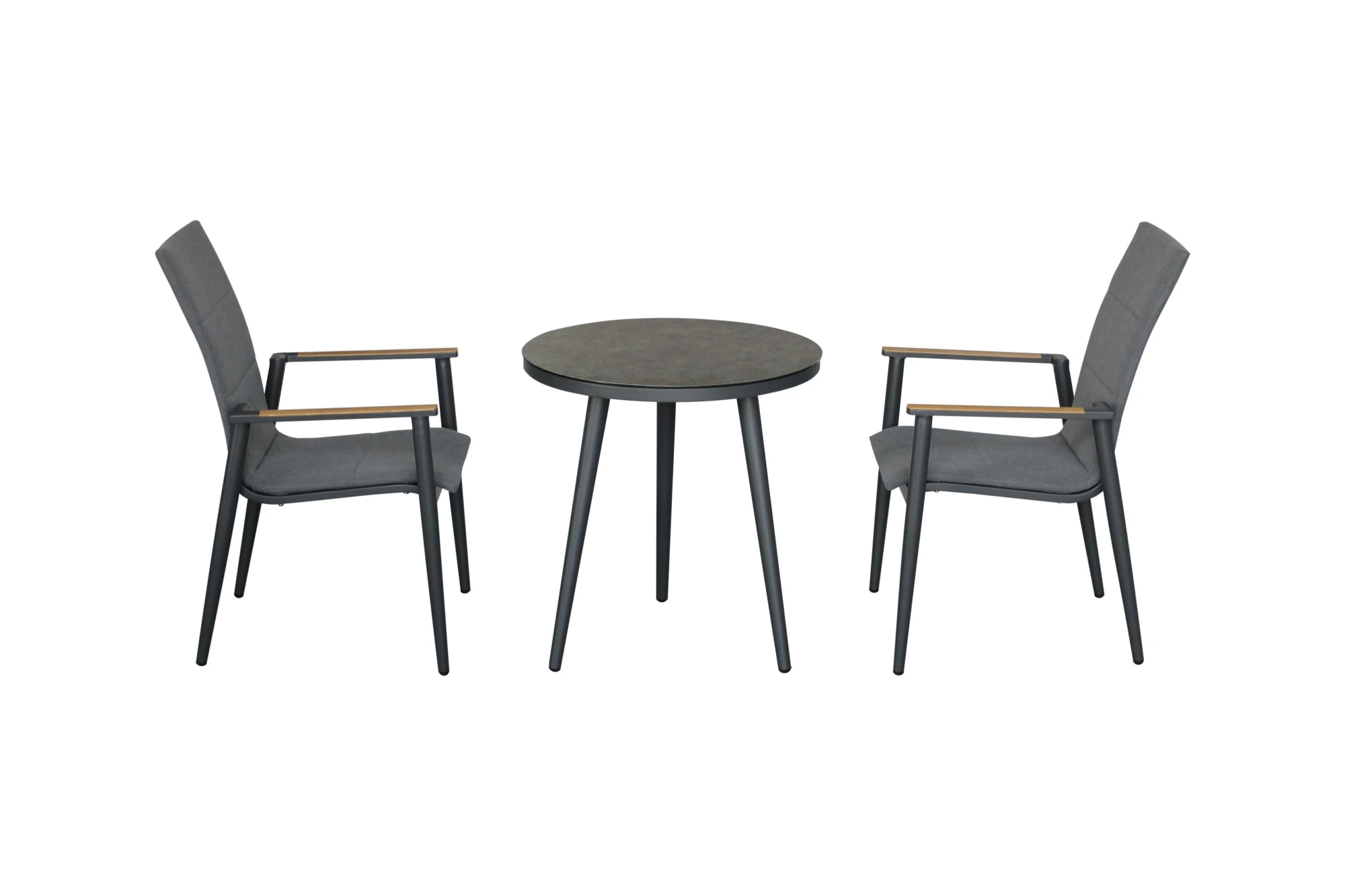 Sofia 80cm Round Bistro Table with 2 Deluxe Armchairs - Anthracite