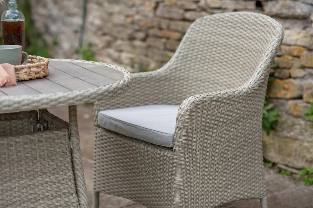 Upgrade your outdoor relaxation space with the Tetbury 80cm Bistro Set in Nutmeg. Order now from our webshop or visit Trioscape Garden Centre to explore more garden furniture options!