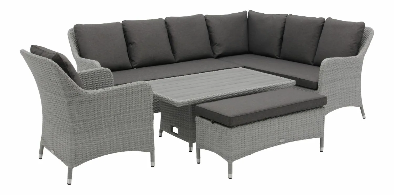 Tetbury L-Shape Sofa with Rectangle Adjustable Tree-Free Table, Bench & Chair - Graphite